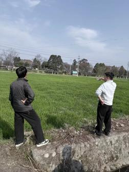 与村干部交谈后,团队得知战旗村依托都江堰灌区优势,以高标准农田建设为抓手,实现粮油菜轮作规模化、机械化,机械化率达90%,并以节气文化为纽带,打造多元产业模式。结合专业特色,团队提出搭建线上展示平台、设计研学路线等建议,获村干部认可。