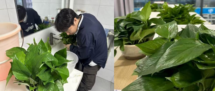 除此之外,学生会办公部成员对自习室清洁工具的配备及使用情况进行全面检查与详细记录,查看了自习室内绿植情况,并主动联系上学期负责自习室清洁的同学,深入了解前期卫生维护情况,及时梳理问题、做好记录,为后续日常维护提供了详实依据。
