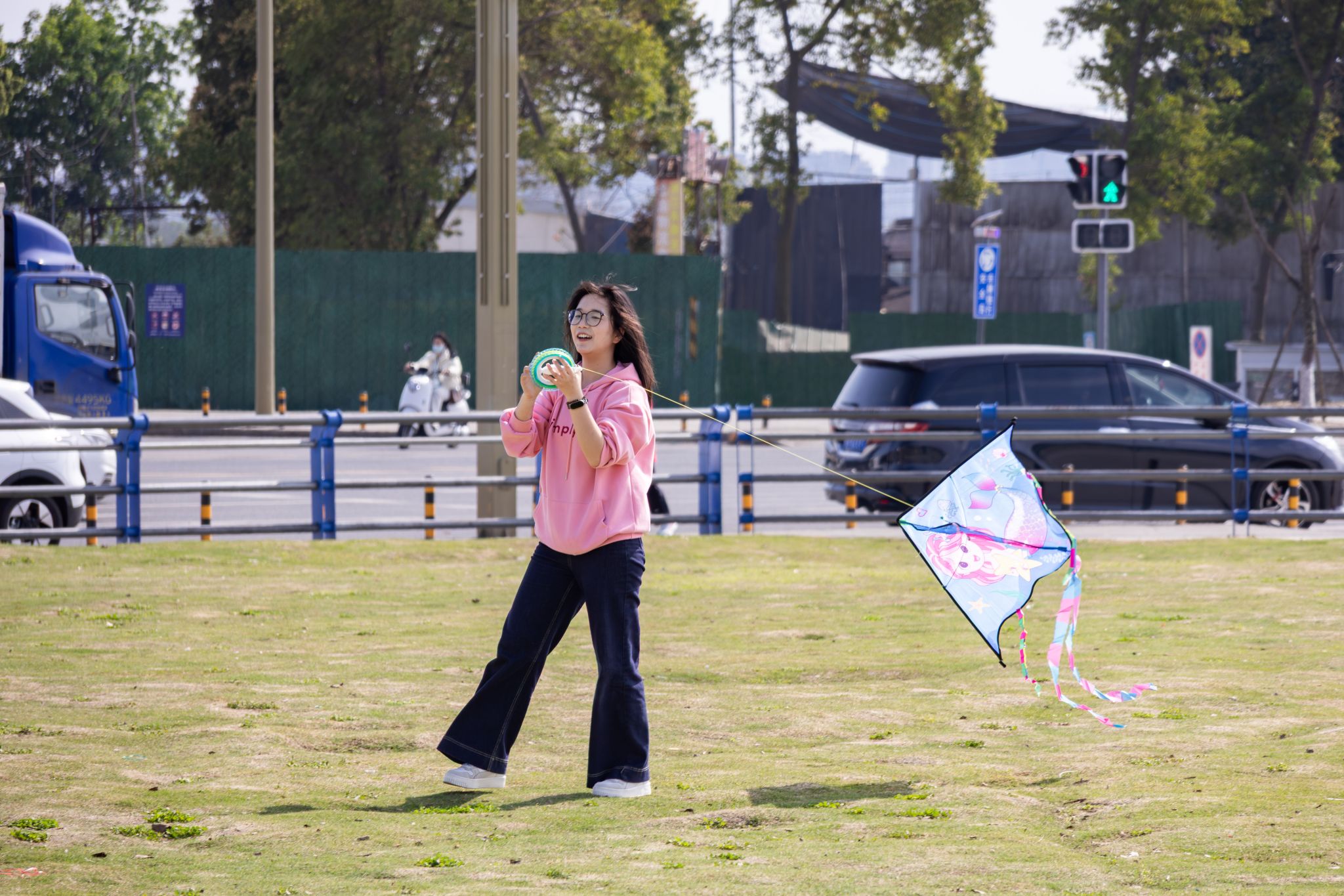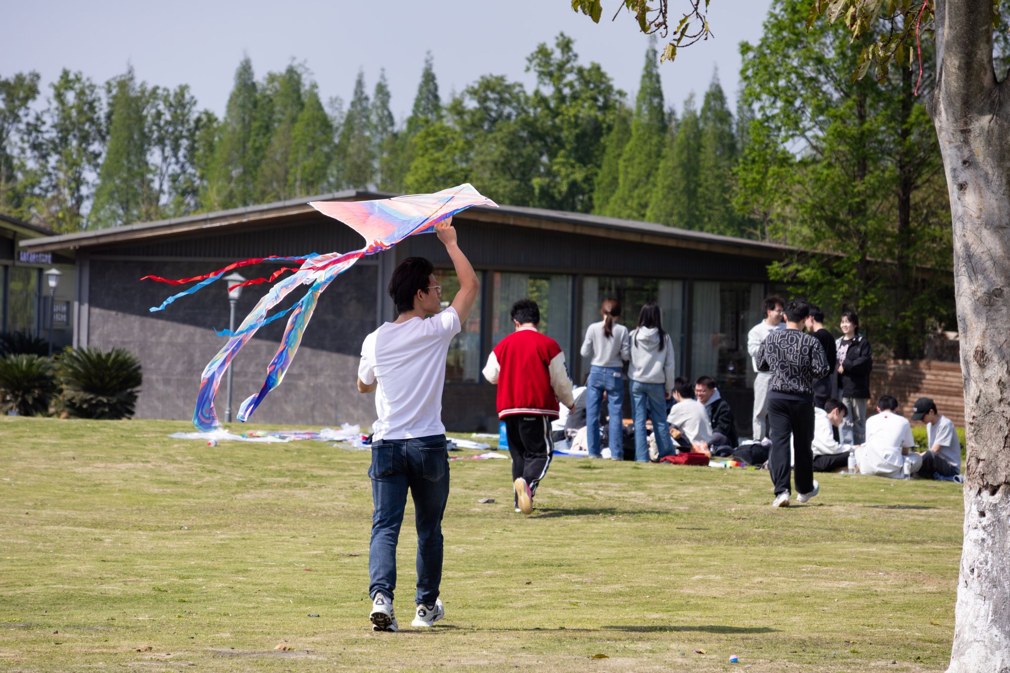 活动现场,同学们分工协作,有的牵引线轴、有的扶筝助飞,五彩斑斓的风筝陆续升空,在蓝天白云间划出灵动的弧线。笑声与奔跑的身影交织,草坪上洋溢着轻松愉悦的氛围。不少同学表示,在放风筝的过程中不仅找回了童年的乐趣,也在春日的户外空间中获得了心灵的舒缓与放松。