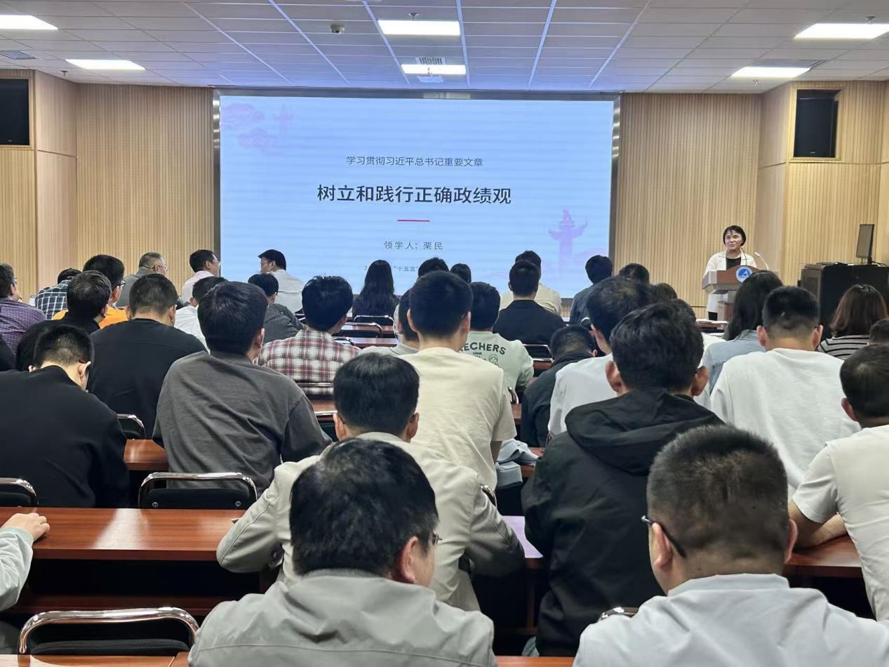 会议伊始,学院党委书记栗民围绕“树立和践行正确政绩观”开展专题领学。她结合高校办学治校根本任务,深入解读了正确政绩观的核心内涵与实践要求,强调全体教职工要牢牢把握“立党为公、为民造福、科学决策、真抓实干”的总要求,将正确政绩观融入教书育人、科研创新和管理服务全过程。