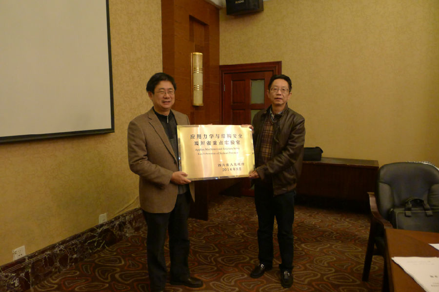 揭牌仪式由应用力学与结构安全四川省重点实验室主任康国政教授主持。蒲云副校长致欢迎辞,刘朝晖副处长代表四川省科技厅宣读了四川省科技厅关于同意建立“应用力学与结构安全四川省重点实验室”的批文,蒲云副校长为“应用力学与结构安全四川省重点实验室”授牌并代表学校为学术委员会主任、实验室主任以及学术委员会委员颁发了聘书。